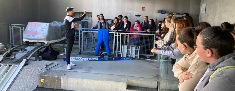 Der Donnerstag hielt ein weiteres Highlight für uns bereit: den Besuch des Bergisels. Mit einer Führung auf der Sprungschanze erhielten wir nicht nur spannende Einblicke in die Welt des Skispringens, sondern konnten auch selbst auf dem berühmten Zitterbalken Platz nehmen – ein Erlebnis, das uns sicher noch lange in Erinnerung bleiben wird. Am Nachmittag besuchten wir die Swarovski Kristallwelten in Wattens, wo wir die faszinierende Welt der Kristalle erkunden konnten.